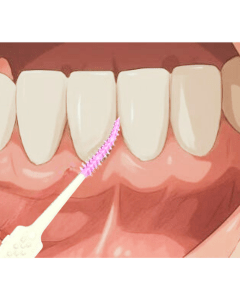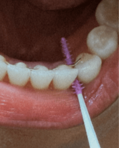 It can fit under larger spaces under the gumline to loosen plaque and food particles between teeth. If braces, bridge work or fixed retainers are present no problem. Best for 3mm spaces.