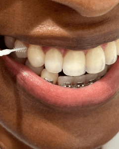 Our flexible toothpik features tiny bristles to brush food particles away efficiently without damage to gums.